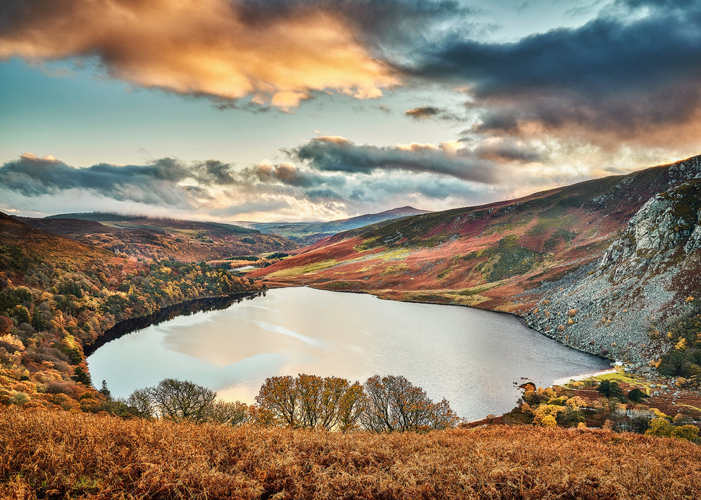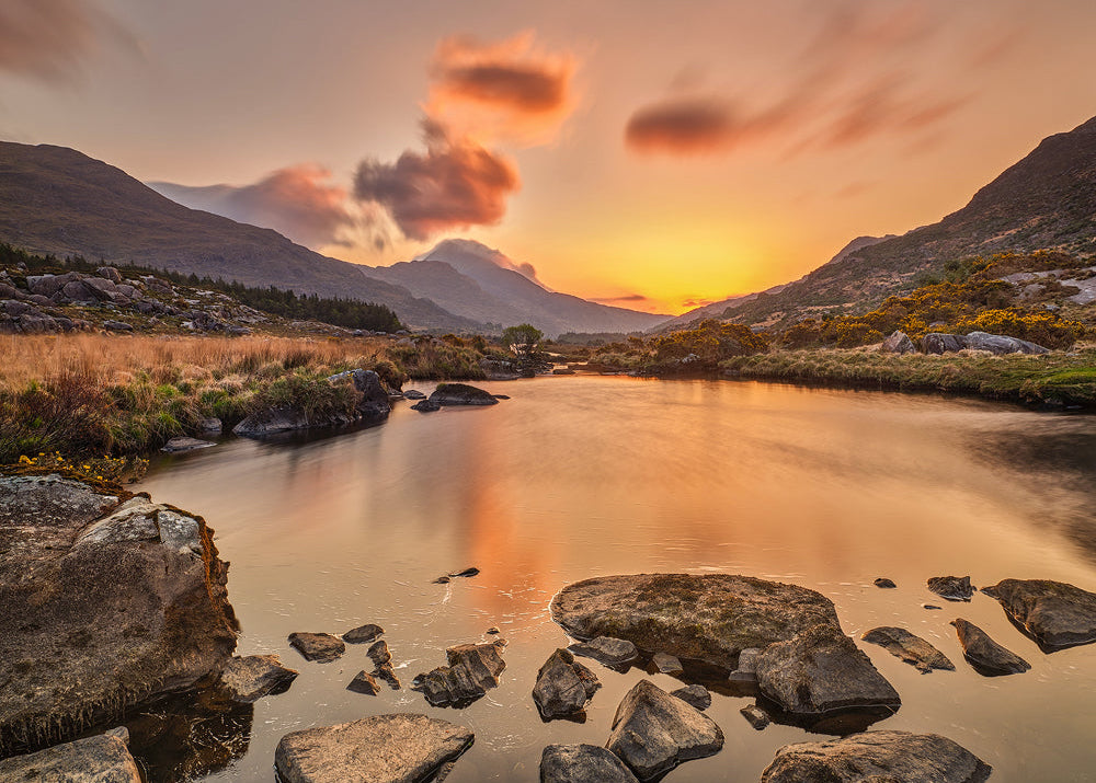 Irish Landscape Photography Print Captured at sunrise in the remote mountains of County Kerry, this photograph of Lough Cummeenduff reveals one of Ireland’s most peaceful...